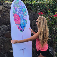 Colleen Wilcox collaborates with Rikka Femme and Murasaki Sports to create rideable surfboards featuring her artwork for the Japanese market