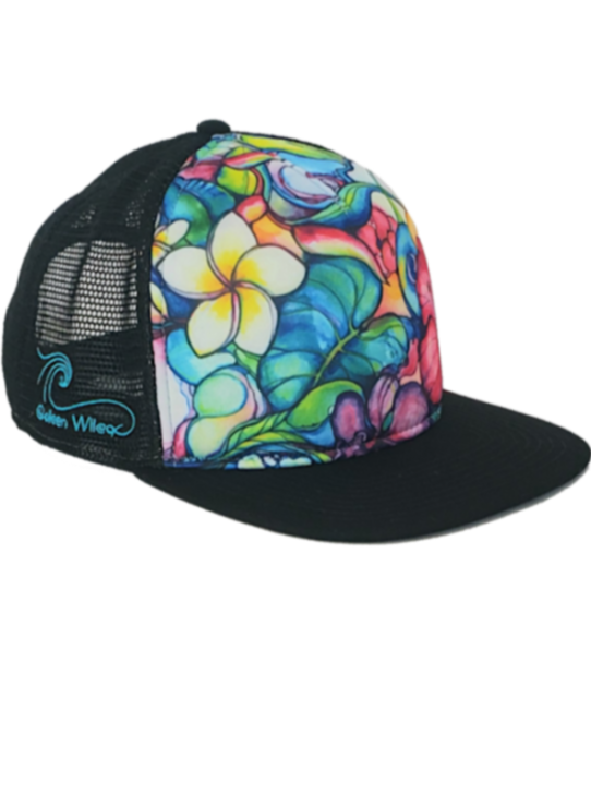 Enliven your style with vivid shades of the tropics! Aloha Trucker Hats featuring Colleen’s vibrant artwork will keep you cool, shaded and dreaming of Hawaii all day long.